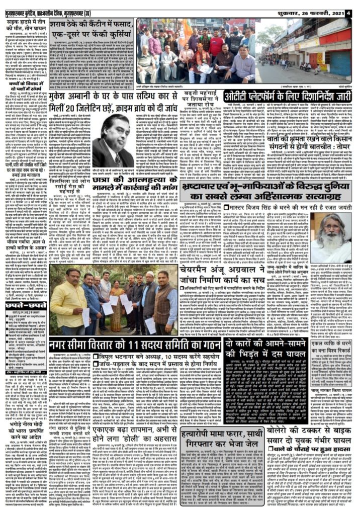 HomeUncategorized Uncategorized 26 फरवरी 2021 By admin February 26, 2021 0 206 Facebook Twitter Pinterest WhatsApp Share Facebook Twitter Pinterest WhatsApp Previous articleलखनऊः राहुल का बयान प्रियंका वाड्रा के लिये उत्तर प्रदेश में खड़ी कर सकता मुसीबतNext articleदिल्लीः भारत बंद का एनसीआर के बाजारों में नहीं दिखा कोई असर adminhttps://muzaffarnagarbulletin.co.in/new-site Related Articles E Paper E-PAPER 08/03/2026 E Paper E-PAPER 07/03/2026 E Paper E-PAPER 06/03/2026 - Advertisement - Latest Articles E Paper E-PAPER 08/03/2026 E Paper E-PAPER 07/03/2026 E Paper E-PAPER 06/03/2026 Uncategorized E-PAPER 04/03/2026 E Paper E-PAPER 03/03/2026 Load more