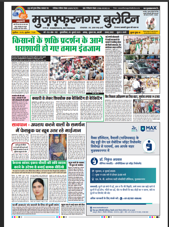 HomeE Paper E Paperमुज़फ्फरनगर E-PAPER 03-07-2025 By admin July 3, 2025 0 245 Facebook Twitter Pinterest WhatsApp मुजफ्फरनगर बुलेटिन न्यूज पेपर की पीडीएफ को डाउनलोड़ करने के लिए यहाँ क्लिक करें। 03 JULY. Bulletin 2025 (1) Tags#bjp #muzaffarnagarbulletin #मुज़फ्फरनगर_न्यूज़aaj ka samacharaccident newsADM narendra bahadur singhAll Accidentall updatesBig Accidentbig newsBig updatesbreaking newsBulletin epaperdm muzaffarnagarE apperLatest newsmuzaffarnagar all new MUZAFFARNAGAR muzaffarnagar newsmuzaffarnagar bulletinMUZAFFARNAGAR NEWS UPDATESmuzaffarnagar policeSSP MUZAFFARNAGARToday E-PaperToday E-PAPER muzaffarnagartoday newsToday update ई पेपरई-पेपर मुज़फ्फरनगर बुलेटिनउत्तर प्रदेशमुज़फ्फरनगर Share Facebook Twitter Pinterest WhatsApp Previous articleE-PAPER 02-07-2025Next articleE-PAPER 04-07-2025 adminhttps://muzaffarnagarbulletin.co.in/new-site Related Articles E Paper E-PAPER 21-02-2026 E Paper E-PAPER 19-02-2026 Uncategorized E-PAPER 18-02-2026 LEAVE A REPLY Cancel reply Comment: Please enter your comment! Name:* Please enter your name here Email:* You have entered an incorrect email address! Please enter your email address here Website: Save my name, email, and website in this browser for the next time I comment. - Advertisement - Latest Articles E Paper E-PAPER 21-02-2026 E Paper E-PAPER 19-02-2026 Uncategorized E-PAPER 18-02-2026 Uncategorized E-PAPER 17-02-2026 Uncategorized E-PAPER 16-02-2026 Load more