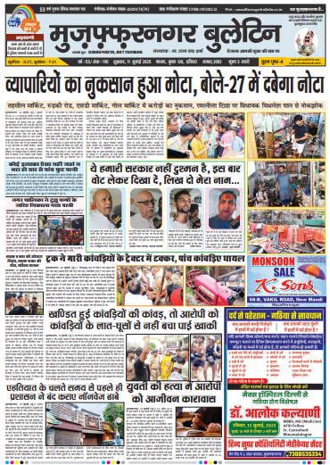 HomeE Paper E PaperUncategorizedअपराध E-paper 11- 07-2025 By admin July 11, 2025 0 415 Facebook Twitter Pinterest WhatsApp मुजफ्फरनगर बुलेटिन का ई-पेपर डाउनलोड करने के लिए यहां क्लिक करें। 11 JULY. Bulletin 2025 Share Facebook Twitter Pinterest WhatsApp Previous articleE-paper 10- 07-2025Next articleE-paper 12- 07-2025 adminhttps://muzaffarnagarbulletin.co.in/new-site Related Articles E Paper E-PAPER 21-02-2026 E Paper E-PAPER 19-02-2026 Uncategorized E-PAPER 18-02-2026 LEAVE A REPLY Cancel reply Comment: Please enter your comment! Name:* Please enter your name here Email:* You have entered an incorrect email address! Please enter your email address here Website: Save my name, email, and website in this browser for the next time I comment. - Advertisement - Latest Articles E Paper E-PAPER 21-02-2026 E Paper E-PAPER 19-02-2026 Uncategorized E-PAPER 18-02-2026 Uncategorized E-PAPER 17-02-2026 Uncategorized E-PAPER 16-02-2026 Load more