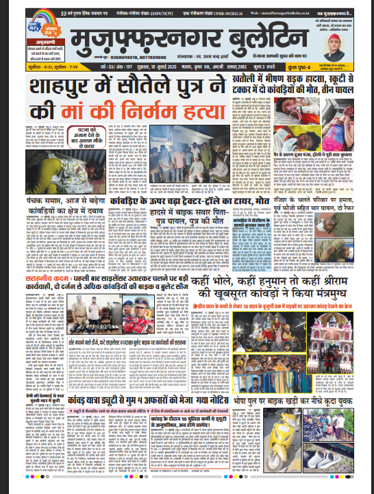 HomeE Paper E Paper E-paper 18- 07-2025 By admin July 22, 2025 0 178 Facebook Twitter Pinterest WhatsApp मुजफ्फरनगर बुलेटिन न्यूज पेपर की पीडीएफ को डाउनलोड़ करने के लिए यहाँ क्लिक करें। 18 JULY. Bulletin 2025 Tags#bjp #muzaffarnagarbulletin #मुज़फ्फरनगर_न्यूज़aaj ka samacharaccident newsADM narendra bahadur singhAll Accidentall updatesBig Accidentbig newsBig updatesbreaking newsBulletin epaperdm muzaffarnagarE apperLatest newsmuzaffarnagar all new MUZAFFARNAGAR muzaffarnagar newsmuzaffarnagar bulletinMUZAFFARNAGAR NEWS UPDATESmuzaffarnagar policeSSP MUZAFFARNAGARToday E-PaperToday E-PAPER muzaffarnagartoday newsToday update ई पेपरई-पेपर मुज़फ्फरनगर बुलेटिनउत्तर प्रदेशमुज़फ्फरनगर Share Facebook Twitter Pinterest WhatsApp Previous articleE-paper 17- 07-2025Next articleE-paper 19- 07-2025 adminhttps://muzaffarnagarbulletin.co.in/new-site Related Articles E Paper E-PAPER 21-02-2026 E Paper E-PAPER 19-02-2026 Uncategorized E-PAPER 18-02-2026 LEAVE A REPLY Cancel reply Comment: Please enter your comment! Name:* Please enter your name here Email:* You have entered an incorrect email address! Please enter your email address here Website: Save my name, email, and website in this browser for the next time I comment. - Advertisement - Latest Articles E Paper E-PAPER 21-02-2026 E Paper E-PAPER 19-02-2026 Uncategorized E-PAPER 18-02-2026 Uncategorized E-PAPER 17-02-2026 Uncategorized E-PAPER 16-02-2026 Load more