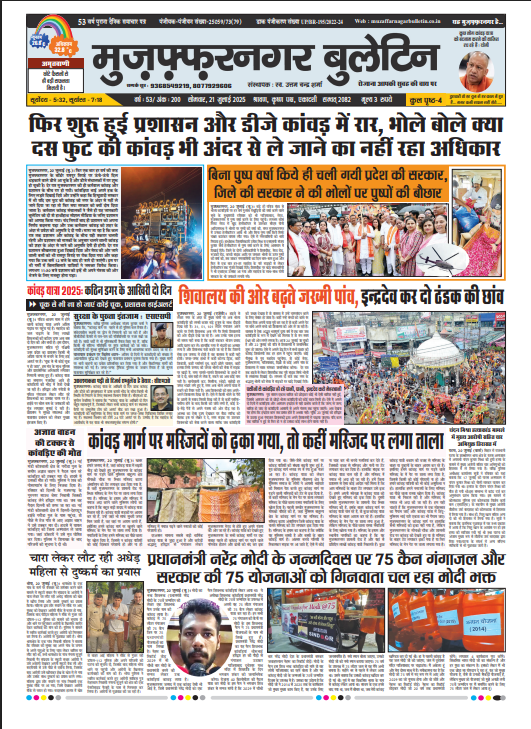 HomeE Paper E Paper E-paper 21- 07-2025 By admin July 22, 2025 0 238 Facebook Twitter Pinterest WhatsApp मुजफ्फरनगर बुलेटिन न्यूज पेपर की पीडीएफ को डाउनलोड़ करने के लिए यहाँ क्लिक करें। 21 JULY. Bulletin 2025 Tags#bjp #muzaffarnagarbulletin #मुज़फ्फरनगर_न्यूज़aaj ka samacharaccident newsADM narendra bahadur singhAll Accidentall updatesBig Accidentbig newsBig updatesbreaking newsBulletin epaperdm muzaffarnagarE apperLatest newsmuzaffarnagar all new MUZAFFARNAGAR muzaffarnagar newsmuzaffarnagar bulletinMUZAFFARNAGAR NEWS UPDATESmuzaffarnagar policeSSP MUZAFFARNAGARToday E-PaperToday E-PAPER muzaffarnagartoday newsToday update ई पेपरई-पेपर मुज़फ्फरनगर बुलेटिनउत्तर प्रदेशमुज़फ्फरनगर Share Facebook Twitter Pinterest WhatsApp Previous articleE-paper 20- 07-2025Next articleE-paper 22- 07-2025 adminhttps://muzaffarnagarbulletin.co.in/new-site Related Articles E Paper E-PAPER 21-02-2026 E Paper E-PAPER 19-02-2026 Uncategorized E-PAPER 18-02-2026 LEAVE A REPLY Cancel reply Comment: Please enter your comment! Name:* Please enter your name here Email:* You have entered an incorrect email address! Please enter your email address here Website: Save my name, email, and website in this browser for the next time I comment. - Advertisement - Latest Articles E Paper E-PAPER 21-02-2026 E Paper E-PAPER 19-02-2026 Uncategorized E-PAPER 18-02-2026 Uncategorized E-PAPER 17-02-2026 Uncategorized E-PAPER 16-02-2026 Load more