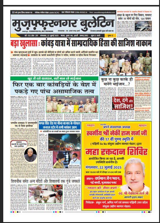 HomeE Paper E Paper E-paper 22- 07-2025 By admin July 22, 2025 0 397 Facebook Twitter Pinterest WhatsApp मुजफ्फरनगर बुलेटिन न्यूज पेपर की पीडीएफ को डाउनलोड़ करने के लिए यहाँ क्लिक करें। 22 JULY. Bulletin 2025 Tags#bjp #muzaffarnagarbulletin #मुज़फ्फरनगर_न्यूज़#मुज़फ्फरनगर_न्यूज़aaj ka samacharaccident newsADM narendra bahadur singhAll Accidentall updatesBig Accidentbig newsBig updatesbreaking newsBulletin epaperdm muzaffarnagarE apperLatest newsmuzaffarnagar all new MUZAFFARNAGAR muzaffarnagar newsmuzaffarnagar bulletinMUZAFFARNAGAR NEWS UPDATESmuzaffarnagar policeSSP MUZAFFARNAGARToday E-PaperToday E-PAPER muzaffarnagartoday newsToday update ई पेपरई-पेपर मुज़फ्फरनगर बुलेटिनउत्तर प्रदेशमुज़फ्फरनगर Share Facebook Twitter Pinterest WhatsApp Previous articleE-paper 21- 07-2025Next articleE-paper 23- 07-2025 adminhttps://muzaffarnagarbulletin.co.in/new-site Related Articles E Paper E-PAPER 21-02-2026 E Paper E-PAPER 19-02-2026 Uncategorized E-PAPER 18-02-2026 LEAVE A REPLY Cancel reply Comment: Please enter your comment! Name:* Please enter your name here Email:* You have entered an incorrect email address! Please enter your email address here Website: Save my name, email, and website in this browser for the next time I comment. - Advertisement - Latest Articles E Paper E-PAPER 21-02-2026 E Paper E-PAPER 19-02-2026 Uncategorized E-PAPER 18-02-2026 Uncategorized E-PAPER 17-02-2026 Uncategorized E-PAPER 16-02-2026 Load more