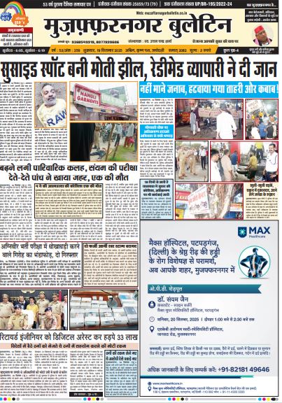 HomeE Paper E Paper E-PAPER 19-09-2025 By admin September 19, 2025 0 276 Facebook Twitter Pinterest WhatsApp मुजफ्फरनगर बुलेटिन न्यूज पेपर की पीडीएफ को डाउनलोड़ करने के लिए यहाँ क्लिक करें। 19 SEPT. Bulletin 2025 👆 Tags#dmmuzafarnagarE PAPERPAPER MUZAFFARNAGAR BULLETINE Share Facebook Twitter Pinterest WhatsApp Previous articleE-PAPER 18-09-2025Next articleE-PAPER 20-09-2025 adminhttps://muzaffarnagarbulletin.co.in/new-site Related Articles E Paper E-PAPER 21-02-2026 E Paper E-PAPER 19-02-2026 Uncategorized E-PAPER 18-02-2026 LEAVE A REPLY Cancel reply Comment: Please enter your comment! Name:* Please enter your name here Email:* You have entered an incorrect email address! Please enter your email address here Website: Save my name, email, and website in this browser for the next time I comment. - Advertisement - Latest Articles E Paper E-PAPER 21-02-2026 E Paper E-PAPER 19-02-2026 Uncategorized E-PAPER 18-02-2026 Uncategorized E-PAPER 17-02-2026 Uncategorized E-PAPER 16-02-2026 Load more