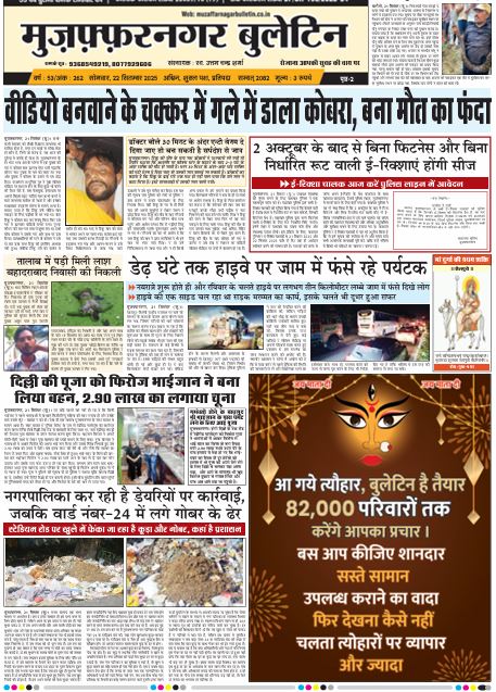 HomeE Paper E Paper E-PAPER 22-09-2025 By admin September 22, 2025 0 329 Facebook Twitter Pinterest WhatsApp मुजफ्फरनगर बुलेटिन न्यूज पेपर की पीडीएफ को डाउनलोड़ करने के लिए यहाँ क्लिक करें। 22 SEPT. Bulletin 2025 👆 TagsE PAPERE PAPER MUZAFFARNAGAR BULLETINE PAPERE Share Facebook Twitter Pinterest WhatsApp Previous articleE-PAPER 21-09-2025Next articleE-PAPER 23-09-2025 adminhttps://muzaffarnagarbulletin.co.in/new-site Related Articles E Paper E-PAPER 21-02-2026 E Paper E-PAPER 19-02-2026 Uncategorized E-PAPER 18-02-2026 LEAVE A REPLY Cancel reply Comment: Please enter your comment! Name:* Please enter your name here Email:* You have entered an incorrect email address! Please enter your email address here Website: Save my name, email, and website in this browser for the next time I comment. - Advertisement - Latest Articles E Paper E-PAPER 21-02-2026 E Paper E-PAPER 19-02-2026 Uncategorized E-PAPER 18-02-2026 Uncategorized E-PAPER 17-02-2026 Uncategorized E-PAPER 16-02-2026 Load more