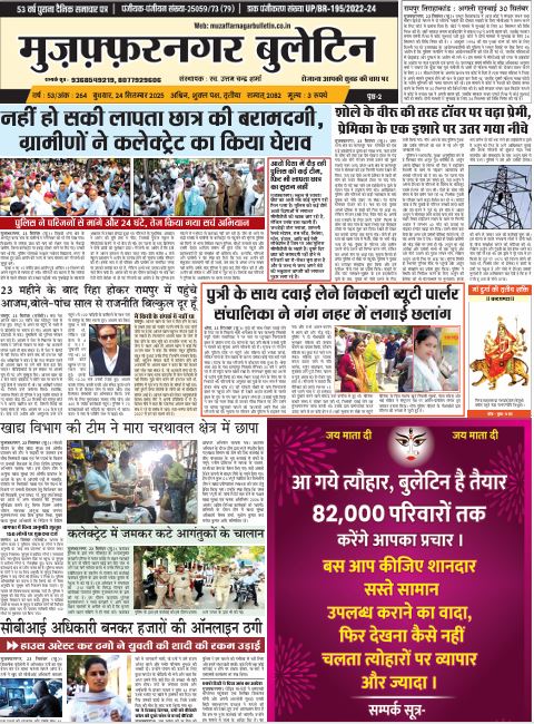 HomeE Paper E Paper E-PAPER 24-09-2025 By admin September 24, 2025 0 365 Facebook Twitter Pinterest WhatsApp मुजफ्फरनगर बुलेटिन न्यूज पेपर की पीडीएफ को डाउनलोड़ करने के लिए यहाँ क्लिक करें। 24.09.2025 👆 TagsBulletin epaperE PAPERE PAPER MUZAFFARNAGAR BULLETINE pepar Share Facebook Twitter Pinterest WhatsApp Previous articleE-PAPER 23-09-2025Next articleE-PAPER 25-09-2025 adminhttps://muzaffarnagarbulletin.co.in/new-site Related Articles E Paper E-PAPER 21-02-2026 E Paper E-PAPER 19-02-2026 Uncategorized E-PAPER 18-02-2026 LEAVE A REPLY Cancel reply Comment: Please enter your comment! Name:* Please enter your name here Email:* You have entered an incorrect email address! Please enter your email address here Website: Save my name, email, and website in this browser for the next time I comment. - Advertisement - Latest Articles E Paper E-PAPER 21-02-2026 E Paper E-PAPER 19-02-2026 Uncategorized E-PAPER 18-02-2026 Uncategorized E-PAPER 17-02-2026 Uncategorized E-PAPER 16-02-2026 Load more