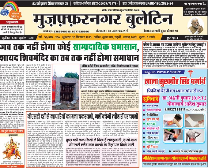 HomeE Paper E Paper E-PAPER 25-09-2025 By admin September 26, 2025 0 305 Facebook Twitter Pinterest WhatsApp मुजफ्फरनगर बुलेटिन न्यूज पेपर की पीडीएफ को डाउनलोड़ करने के लिए यहाँ क्लिक करें। 26 SEPT. Bulletin 2025 👆 Tags#muzaffarnagarbulletinE PAPERE PAPER MUZAFFARNAGAR BULLETINE PAPERE Share Facebook Twitter Pinterest WhatsApp Previous articleE-PAPER 25-09-2025Next articleE-PAPER 28-09-2025 adminhttps://muzaffarnagarbulletin.co.in/new-site Related Articles E Paper E-PAPER 21-02-2026 E Paper E-PAPER 19-02-2026 Uncategorized E-PAPER 18-02-2026 LEAVE A REPLY Cancel reply Comment: Please enter your comment! Name:* Please enter your name here Email:* You have entered an incorrect email address! Please enter your email address here Website: Save my name, email, and website in this browser for the next time I comment. - Advertisement - Latest Articles E Paper E-PAPER 21-02-2026 E Paper E-PAPER 19-02-2026 Uncategorized E-PAPER 18-02-2026 Uncategorized E-PAPER 17-02-2026 Uncategorized E-PAPER 16-02-2026 Load more