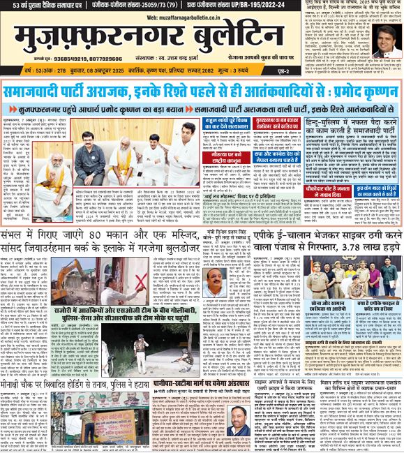 HomeE Paper E Paper E-PAPER 08-10-2025 By admin October 8, 2025 0 521 Facebook Twitter Pinterest WhatsApp मुजफ्फरनगर बुलेटिन न्यूज पेपर की पीडीएफ को डाउनलोड़ करने के लिए यहाँ क्लिक करें। 08 OCT. Bulletin 2025 👆 TagsE PAPERE PAPER MUZAFFARNAGAR BULLETIN Share Facebook Twitter Pinterest WhatsApp Previous articleE-PAPER 07-10-2025Next articleE-PAPER 12-10-2025 adminhttps://muzaffarnagarbulletin.co.in/new-site Related Articles E Paper E-PAPER 21-02-2026 E Paper E-PAPER 19-02-2026 Uncategorized E-PAPER 18-02-2026 LEAVE A REPLY Cancel reply Comment: Please enter your comment! Name:* Please enter your name here Email:* You have entered an incorrect email address! Please enter your email address here Website: Save my name, email, and website in this browser for the next time I comment. - Advertisement - Latest Articles E Paper E-PAPER 21-02-2026 E Paper E-PAPER 19-02-2026 Uncategorized E-PAPER 18-02-2026 Uncategorized E-PAPER 17-02-2026 Uncategorized E-PAPER 16-02-2026 Load more