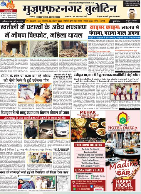 HomeE Paper E Paper E-PAPER 13-10-2025 By admin October 13, 2025 0 1239 Facebook Twitter Pinterest WhatsApp मुजफ्फरनगर बुलेटिन न्यूज पेपर की पीडीएफ को डाउनलोड़ करने के लिए यहाँ क्लिक करें। 13 OCT. Bulletin 2025 👆 Tagsaaj ka samacharbreking newsE PAPERE PAPER MUZAFFARNAGAR BULLETIN Share Facebook Twitter Pinterest WhatsApp Previous articleE-PAPER 12-10-2025Next articleएक साल में सरसों के तेल ने पकड़ी रफ्तार, लगातार बढ़ रही सरसों के तेल की कीमतें adminhttps://muzaffarnagarbulletin.co.in/new-site Related Articles E Paper E-PAPER 21-02-2026 E Paper E-PAPER 19-02-2026 Uncategorized E-PAPER 18-02-2026 LEAVE A REPLY Cancel reply Comment: Please enter your comment! Name:* Please enter your name here Email:* You have entered an incorrect email address! Please enter your email address here Website: Save my name, email, and website in this browser for the next time I comment. - Advertisement - Latest Articles E Paper E-PAPER 21-02-2026 E Paper E-PAPER 19-02-2026 Uncategorized E-PAPER 18-02-2026 Uncategorized E-PAPER 17-02-2026 Uncategorized E-PAPER 16-02-2026 Load more