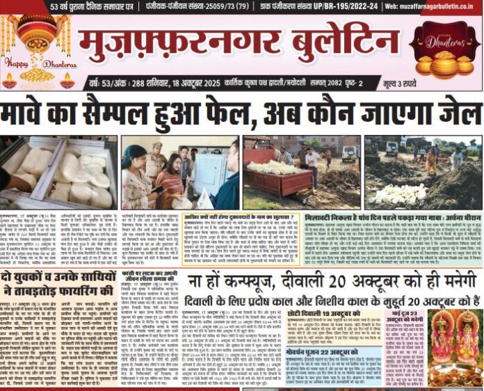 HomeE Paper E Paper E-PAPER 18-10-2025 By admin October 18, 2025 0 434 Facebook Twitter Pinterest WhatsApp मुजफ्फरनगर बुलेटिन न्यूज पेपर की पीडीएफ को डाउनलोड़ करने के लिए नीचे बने निशान से उपर की दिनांक को क्लिक करें। 18 OCT. Bulletin 2025 👆 Tags#muzaffarnagarbulletinE PAPERE PAPER MUZAFFARNAGAR BULLETIN Share Facebook Twitter Pinterest WhatsApp Previous articleE-PAPER 17-10-2025Next articleE-PAPER 22-10-2025 adminhttps://muzaffarnagarbulletin.co.in/new-site Related Articles E Paper E-PAPER 21-02-2026 E Paper E-PAPER 19-02-2026 Uncategorized E-PAPER 18-02-2026 LEAVE A REPLY Cancel reply Comment: Please enter your comment! Name:* Please enter your name here Email:* You have entered an incorrect email address! Please enter your email address here Website: Save my name, email, and website in this browser for the next time I comment. - Advertisement - Latest Articles E Paper E-PAPER 21-02-2026 E Paper E-PAPER 19-02-2026 Uncategorized E-PAPER 18-02-2026 Uncategorized E-PAPER 17-02-2026 Uncategorized E-PAPER 16-02-2026 Load more