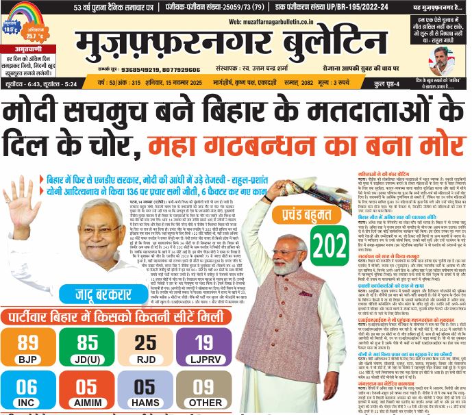 HomeE Paper E Paper E-PAPER 15-11-2025 By admin November 15, 2025 0 556 Facebook Twitter Pinterest WhatsApp मुजफ्फरनगर बुलेटिन न्यूज पेपर की पीडीएफ को डाउनलोड़ करने के लिए नीचे बने निशान से उपर की दिनांक को क्लिक करें। 15 NOV. Bulletin 2025 👆 Tags#muzaffarnagarbulletin Share Facebook Twitter Pinterest WhatsApp Previous articleE-PAPER 02-11-2025Next articleE-PAPER 17-11-2025 adminhttps://muzaffarnagarbulletin.co.in/new-site Related Articles E Paper E-PAPER 21-02-2026 E Paper E-PAPER 19-02-2026 Uncategorized E-PAPER 18-02-2026 LEAVE A REPLY Cancel reply Comment: Please enter your comment! Name:* Please enter your name here Email:* You have entered an incorrect email address! Please enter your email address here Website: Save my name, email, and website in this browser for the next time I comment. - Advertisement - Latest Articles E Paper E-PAPER 21-02-2026 E Paper E-PAPER 19-02-2026 Uncategorized E-PAPER 18-02-2026 Uncategorized E-PAPER 17-02-2026 Uncategorized E-PAPER 16-02-2026 Load more