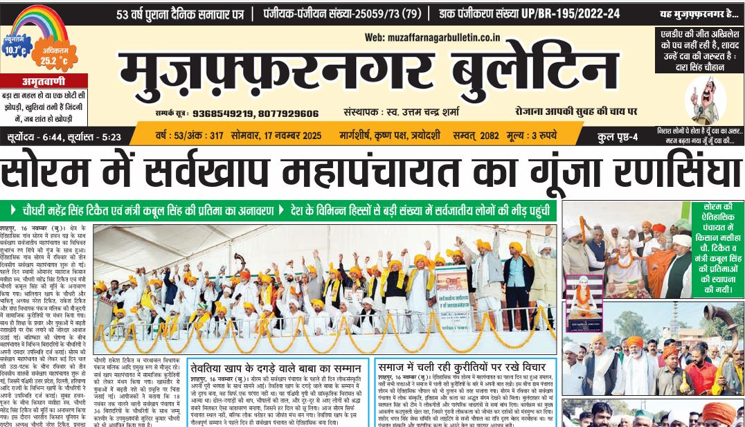 HomeE Paper E Paper E-PAPER 17-11-2025 By admin November 17, 2025 0 514 Facebook Twitter Pinterest WhatsApp मुजफ्फरनगर बुलेटिन न्यूज पेपर की पीडीएफ को डाउनलोड़ करने के लिए नीचे बने निशान से उपर की दिनांक को क्लिक करें। 17 NOV. Bulletin 2025 👆 TagsE PAPERE PAPER MUZAFFARNAGAR BULLETIN Share Facebook Twitter Pinterest WhatsApp Previous articleE-PAPER 15-11-2025Next articleE-PAPER 18-11-2025 adminhttps://muzaffarnagarbulletin.co.in/new-site Related Articles E Paper E-PAPER 21-02-2026 E Paper E-PAPER 19-02-2026 Uncategorized E-PAPER 18-02-2026 LEAVE A REPLY Cancel reply Comment: Please enter your comment! Name:* Please enter your name here Email:* You have entered an incorrect email address! Please enter your email address here Website: Save my name, email, and website in this browser for the next time I comment. - Advertisement - Latest Articles E Paper E-PAPER 21-02-2026 E Paper E-PAPER 19-02-2026 Uncategorized E-PAPER 18-02-2026 Uncategorized E-PAPER 17-02-2026 Uncategorized E-PAPER 16-02-2026 Load more